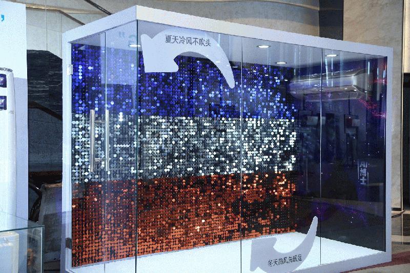 一直以来,送风与空调的舒适度关系最为密切。现场,海信空调借助道具演示了AI舒适气流TM的送风原理。当开启制热模式时,用来检测风向的彩条帘幕下侧迅速摆动,暖风以90°垂直送达地面,使暖气流从足部均匀蔓延上升;当开启制冷模式时,彩条帘幕上方摆动,凉风从上方洒下更为舒适。这种模式下,制热时暖房速度更快、更均匀,制冷时避免了直吹带来的不适。