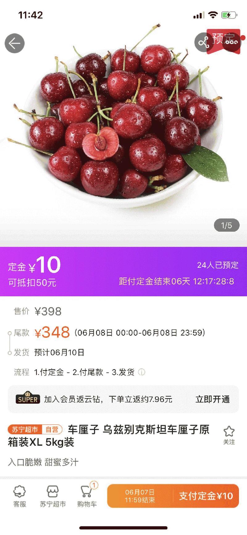 家电3C类的产品是苏宁的传统强项,各品牌的表现抢眼,这在苏宁易购的平台上,已然是一件正常的事情了。 在生鲜果品类方面,苏宁易购同样表现抢眼,新晋网红产品乌兹别克斯坦车厘子,一小时热销5吨,目前平台更是推出了10元抵50元的券,348元的5KG装的车厘子,308元即可在6月10日带回家。
