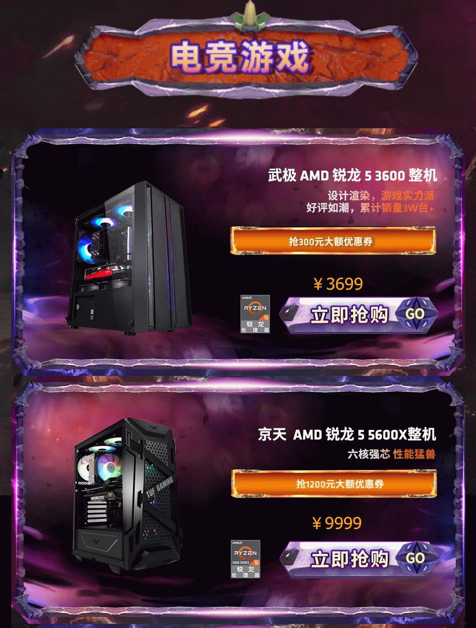 作为AMD 618年中大促的重磅整机活动,此次促销型号繁多,力度空前,近期想更换自家硬件平台的朋友不妨直接选择一款,第一时间就能体验到制霸游戏的快感了。