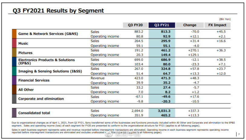 2月2日,索尼集团公司公布2021财年第三季度(2021年10月1日——2021年12月31日)整体业绩数字。