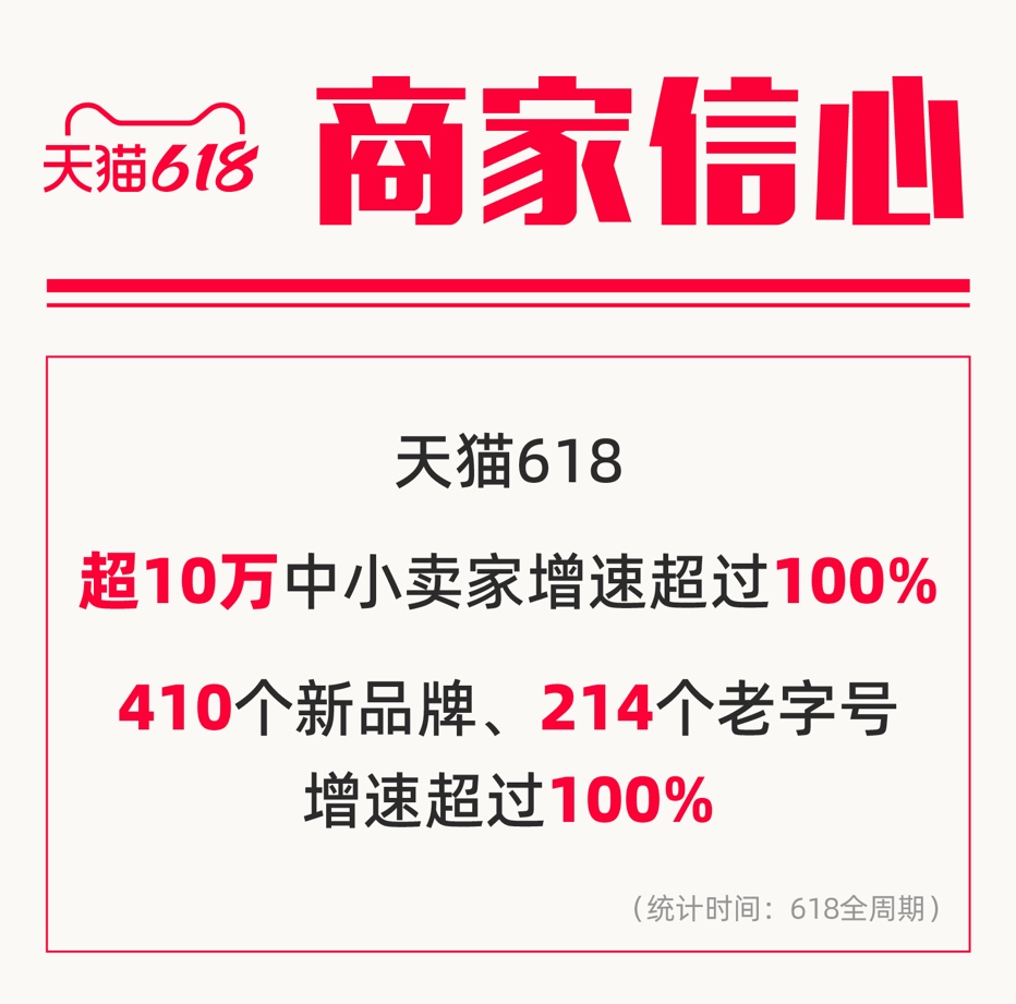 天猫618持续增长,近300个品牌成交过亿,超10万中小卖家增速超100%