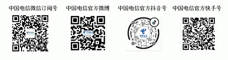 获取更多信息,请访问中国电信官方网站www.chinatelecom.com.cn或者关注“@中国电信”微信订阅号、官方微博、抖音和快手账号。