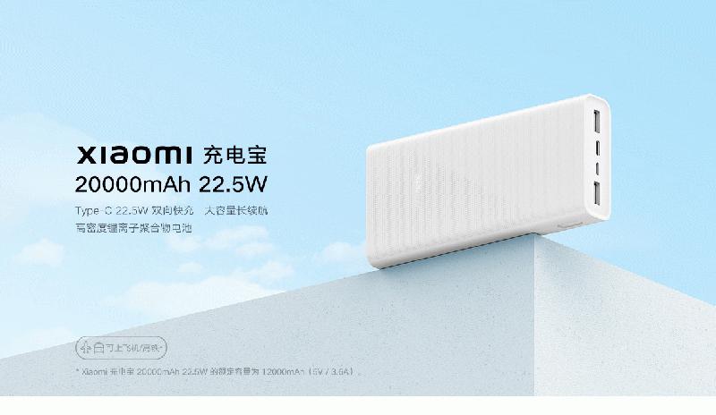8月17日,小米发布新款20000mAh充电宝,售价149元。采用磨砂工艺辅以渐变蚀纹,有效提升了持握手感。PC+ABS塑胶环保材料防滑耐刮花,经久耐用。20000mAh超大容量,可为手机多次充电。两个USB-A接口和一个Type-C接口,单口输出功率均为22.5W MAX。支持同时输出,可同时为三台设备充电,包括不同品牌的手机、平板电脑、Switch等设备。双击按键开启2小时小电流充电模式还可为小米蓝牙耳机、小米手环充电。Type-C接口支持双向充电,最高支持22.5W MAX的输入功率,搭配小米GaN充电器Type-C 33W充电器配合使用,约6.9小时即可完成充电宝自充。