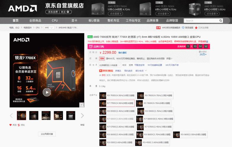 AMD 锐龙7 7700X京东购买链接: