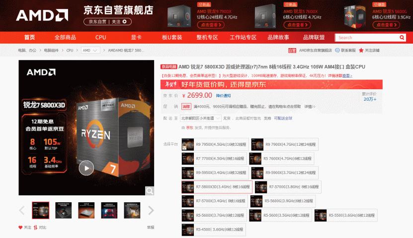 AMD 锐龙7 5800X3D处理器京东购买链接: