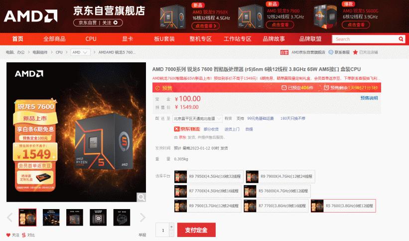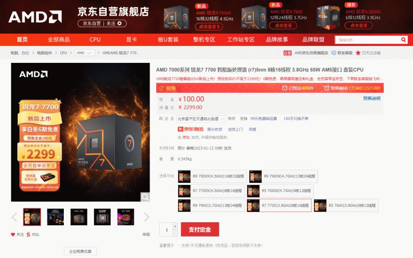AMD锐龙7000智酷版处理器京东自营旗舰店首发活动链接: