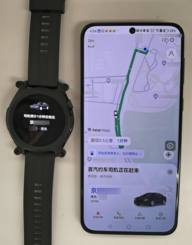 当然有!如果你是华为手机用户,恰好又有华为WATCH GT 3系列手表,那你一定要尝试一下Petal 出行的手表协同打车功能。Petal 出行可实现订单在手机和手表之间实时同步与提醒,基于一个华为帐号,当我们在手机上用Petal 出行发起打车订单后,手机上的订单状态即可自动同步到手表上,不需要任何其它操作,包括车牌号、车辆颜色、预计等候时长、剩余行驶时间等订单信息,抬腕可见。即使带着大包小包的行李、或者正在接打电话,也能快速了解打车订单信息。