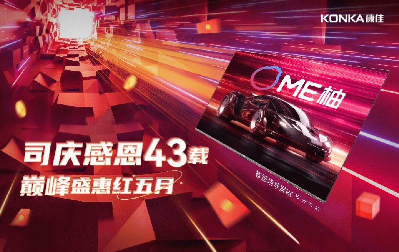 5月,风和日丽,万物生长。在这美好的时节,康佳迎来了43周年庆典,并携旗下高端电视臻品,为千万家庭带来大屏巅峰钜惠,以回馈广大消费者多年来的厚爱!5月15日起,康佳电视线上线下同步开启以“司庆感恩43载 巅峰盛惠红五月”为主题的司庆促销活动,以惊喜的价格加磅优惠力度,以超优的司庆福利调动生日氛围,用真金白银的补贴、大力度的促销活动,打造了一席诚意满满的钜惠盛宴。