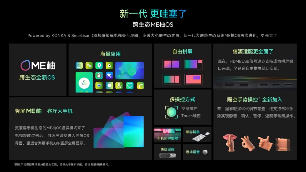 围绕家庭舒适品质的观影需求及多元化的客厅娱乐方式,康佳电视多年来矢志创新,不断探索显示硬件+系统软件上的革新方案,坚持MINI显示技术和ME柚OS系统双线升级策略,与年轻人玩在一起,实现中高端产品迭代从而持续扩大市场规模获得稳步发展,同时持续树立良好的品牌形象,赢得众多消费者的青睐与信任。站在新的起点,康佳电视在转型变革中前行,将用新战略、新格局突围市场,再创辉煌。同时也将紧紧抓住时代的机遇,用好产品、好服务真诚打动更多消费者。