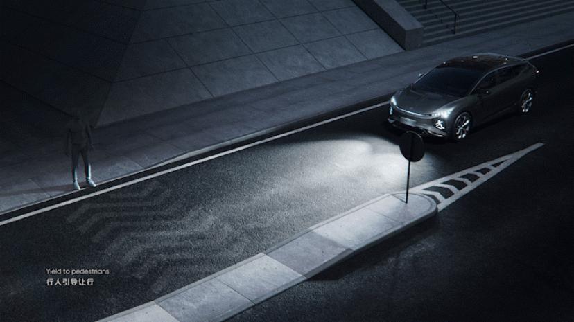 其中,PML可编程智能大灯配备独立的计算平台和夜视摄像头,搭载全球领先的数字微镜投影芯片,不同开角的反射镜像手术刀一样精细“切割” LED光源投射过来的光束,实现智能化的精确控制。此外,它还可智能识别驾驶场景,实现随速智能调整光型和照明功能。当遇见前方有行人时,PML可编程智能大灯系统会自动追踪行人相对位置并主动调整光束避开行人头部,当行人横穿路面时,为其投射出一道“行人先行图像”,这也是作为未来智能出行构建者的华人运通独到的人性化关怀设计。这款大灯还能够投射出文字与图像,传情达意。