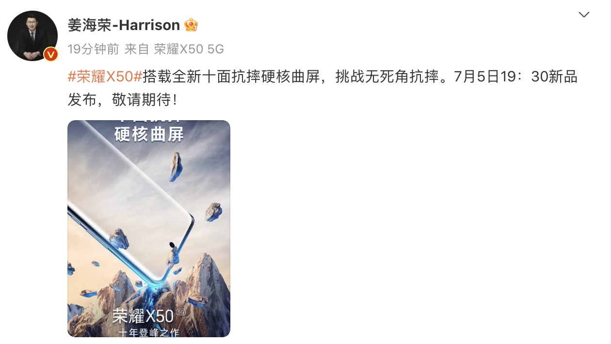 荣耀中国区CMO姜海荣在发布会表示,“荣耀X50既是荣耀X系列十周年的登峰之作,也是新十年的开篇之作。它在品质、屏幕、续航、性能、影像领域全面突破,为用户带来一步到位的超能体验”。