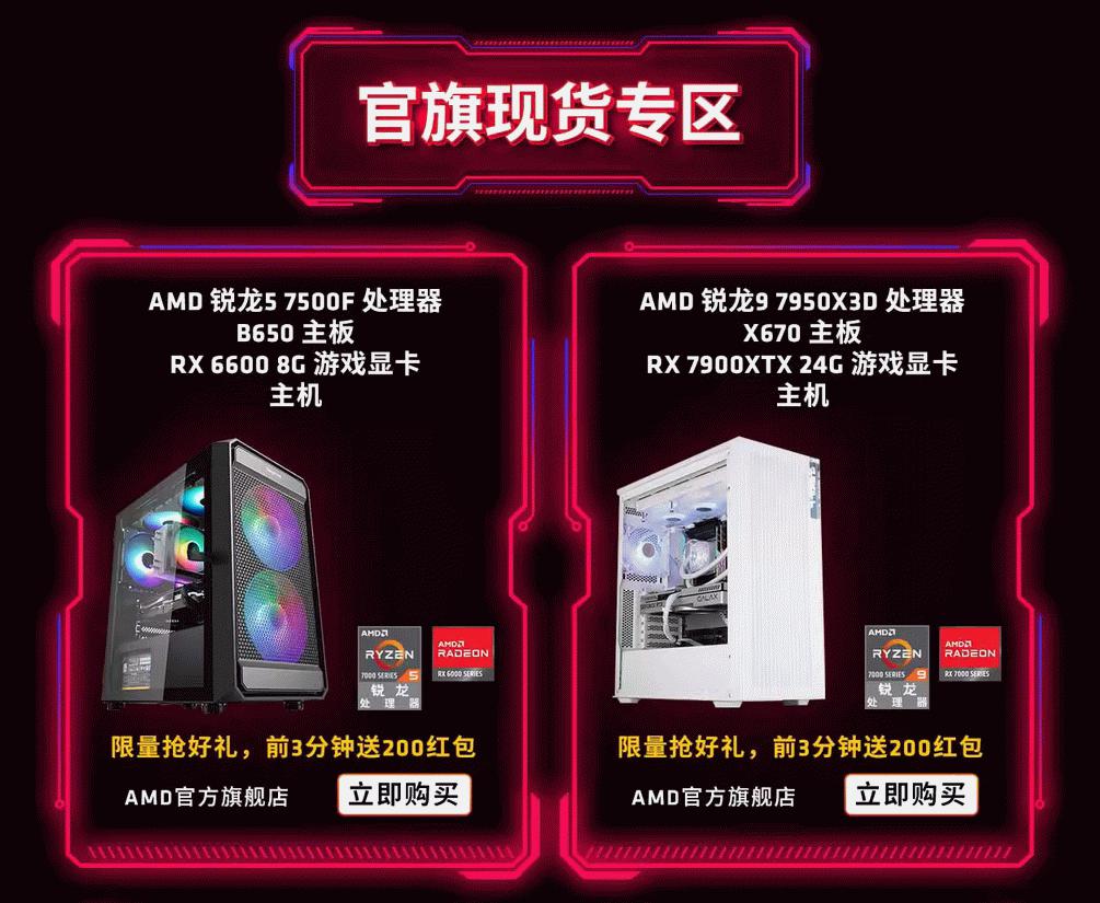 AMD天猫官方旗舰店和各大合作专卖店在活动产品上为大家准备了各种DIY配件和整机,无论您想购买爆款锐龙处理器单品、板U套装还是整机产品,在活动页面都能找到自己最想要的那一款。已经预定的朋友们记得及时支付尾款,而想要直接选购现货的朋友们也有非常多的选择和优惠。