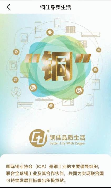 近日,铜佳品质生活全面加强对铜的环保属性的推广,并已在能效标识二维码系统上线。这意味着铜的绿色、低碳和可循环特性已正式获得业内官方认可。只需扫描任意一个产品二维码,您就可以在首页上清晰地看到全新的环保内容。作为备受推崇的权威第三方品牌,铜佳品质生活一直以来都在强调铜的优势和合理应用,并广泛传播。为了让更多人了解铜的环保属性,这次迈出了重要的一步。