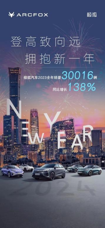 其中,北汽蓝谷打造的高端智能电动汽车品牌极狐汽车,是拉动该公司整体销量增长的主要动力源。极狐汽车全系产品在2023年12月销售新车8004辆,2023全年销售新车30016辆,同比增长约138%,较2022年实现翻倍增长。