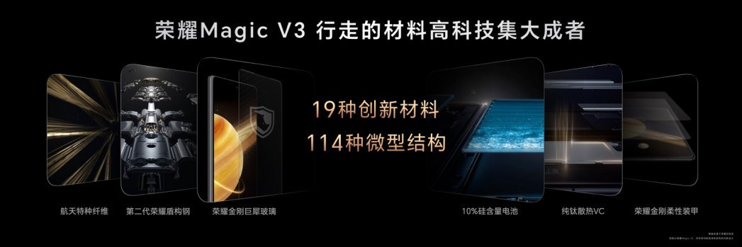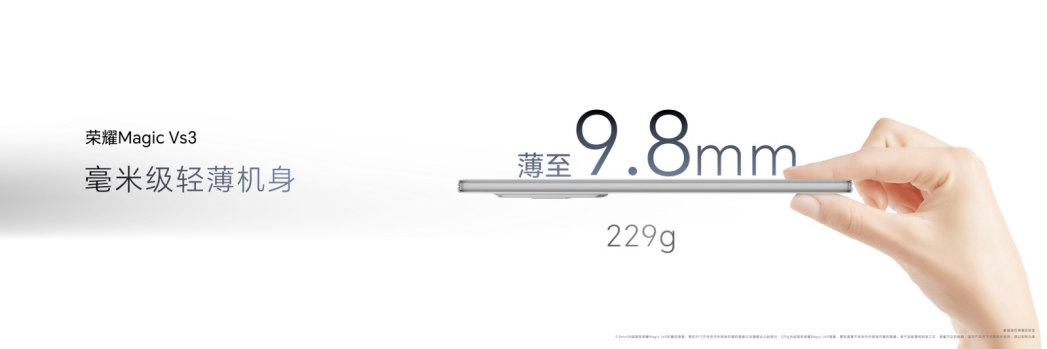 作为真正实现轻薄强大合体的折叠旗舰,越强大越轻薄的荣耀Magic V3成为荣耀又一科技创新里程碑之作,是极致科技的最尖端展现。此次,荣耀Magic V3跨界创新带来行业首个轻薄折叠屏解决方案荣耀鲁班架构,采用19种创新材料及114种创新微型结构,折叠态机身减薄至9.2mm,再次刷新折叠屏轻薄纪录,一次性解决折叠屏做薄做强难题,重构折叠屏轻薄体验及交互体验,引领折叠屏品类进入新的创新周期。荣耀Magic Vs3也以9.8mm机身实现轻薄体验突破,同时在影像、续航、AI交互体验等方面媲美直板机,是直板机用户换折叠屏的最佳选择。