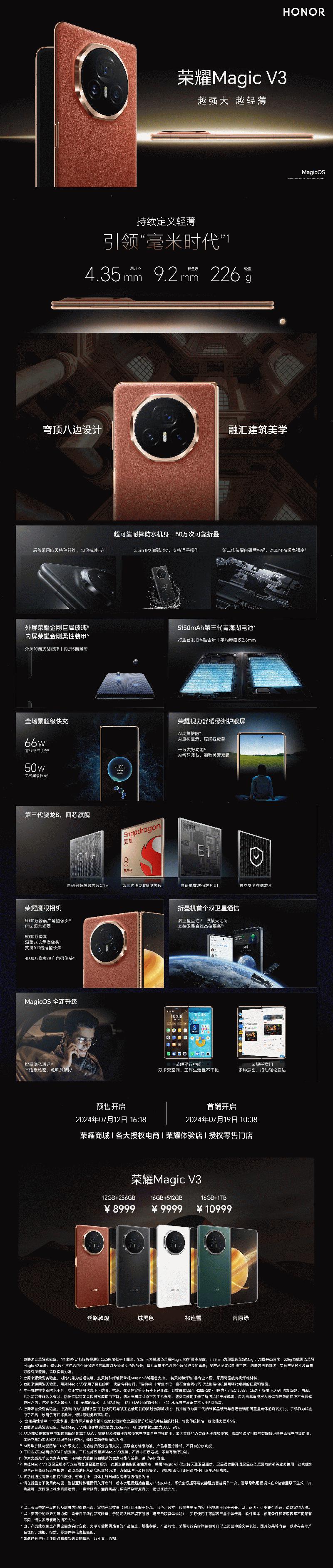 荣耀Magic V3正式发布,9.2mm再次刷新折叠屏轻薄纪录