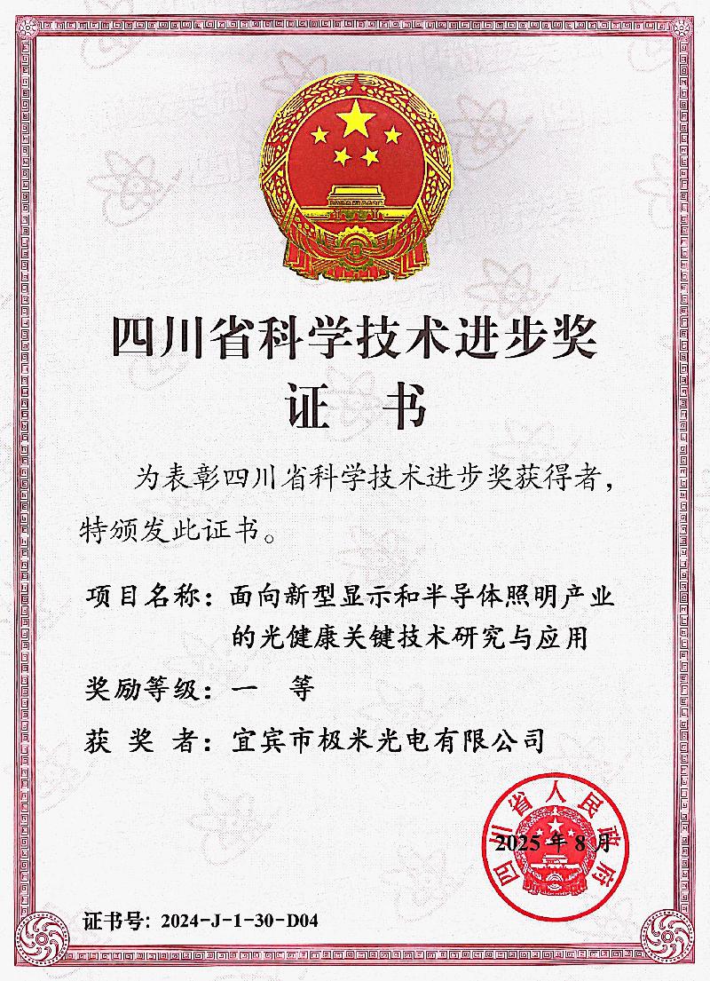从1985年设立至今,四川省科学技术奖一直是四川省科技界最高规格的奖项。目前奖项评审标准日趋严格,要求项目与国家重大战略需求和地方产业发展紧密结合,真正解决四川发展中遇到的技术问题。授奖总数持续“瘦身”,竞争日益激烈,但奖项的含金量不断提升。其中四川省科技进步奖一等奖更是只有35个。宜宾市极米光电有限公司能从众多报送项目中脱颖而出,凭借自主研发的高画质混光技术,与相关产学研单位一同,以《面向新型显示和半导体照明产业的光健康关键技术研究与应用》这一项目荣获四川省科技进步奖一等奖,可见其雄厚的技术研发实力和多年来在技术研发上的不断投入。